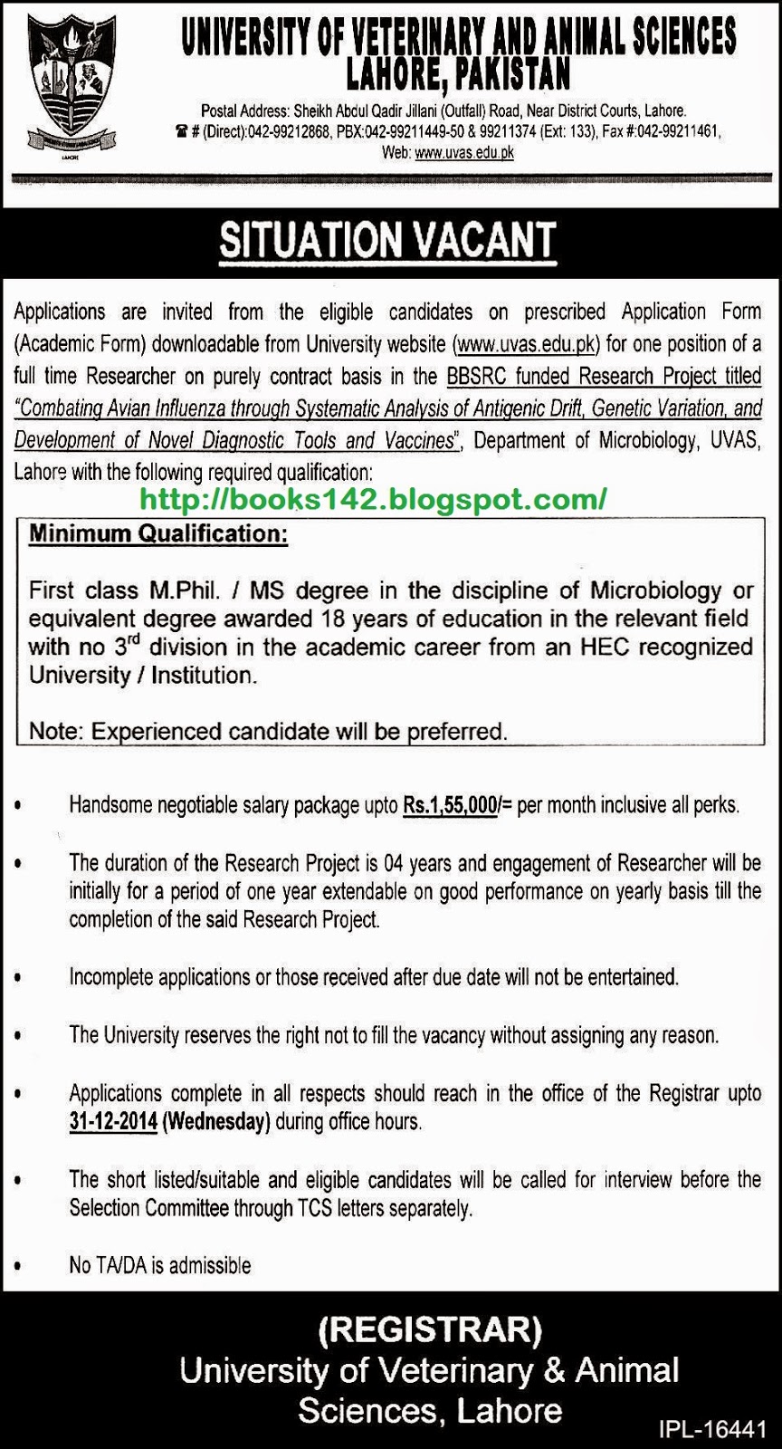 Uvas Jobs October University Of Veterinary Animal Sciences